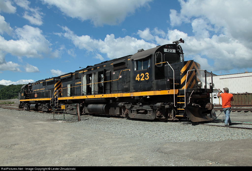 55 ALCOs still are operating in New York state. Here two get a wash. The Livonia Avon & Lakeville fleet are well taken care of-- cosmetically and mechanically.