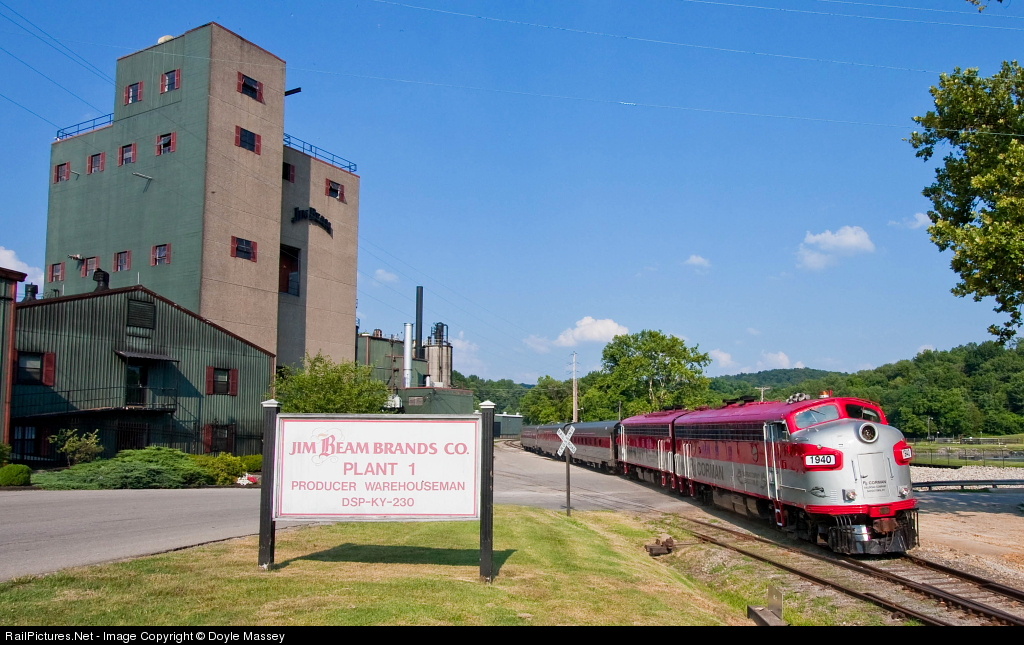 RJ Corman’s My Old Kentucky Dinner Train passes the Jim Beam Distillery in Clermont, KY.