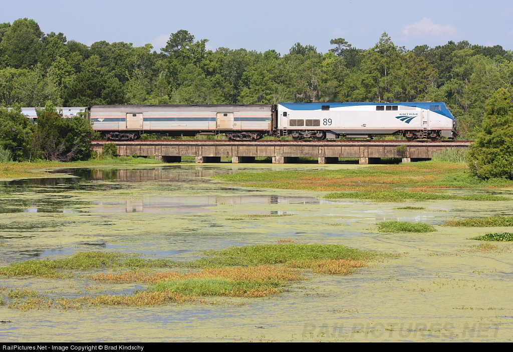 | Amtrak #90, the Silver Palm, crosses over the Goose Creek wetlands in the low country of South Carolina. |