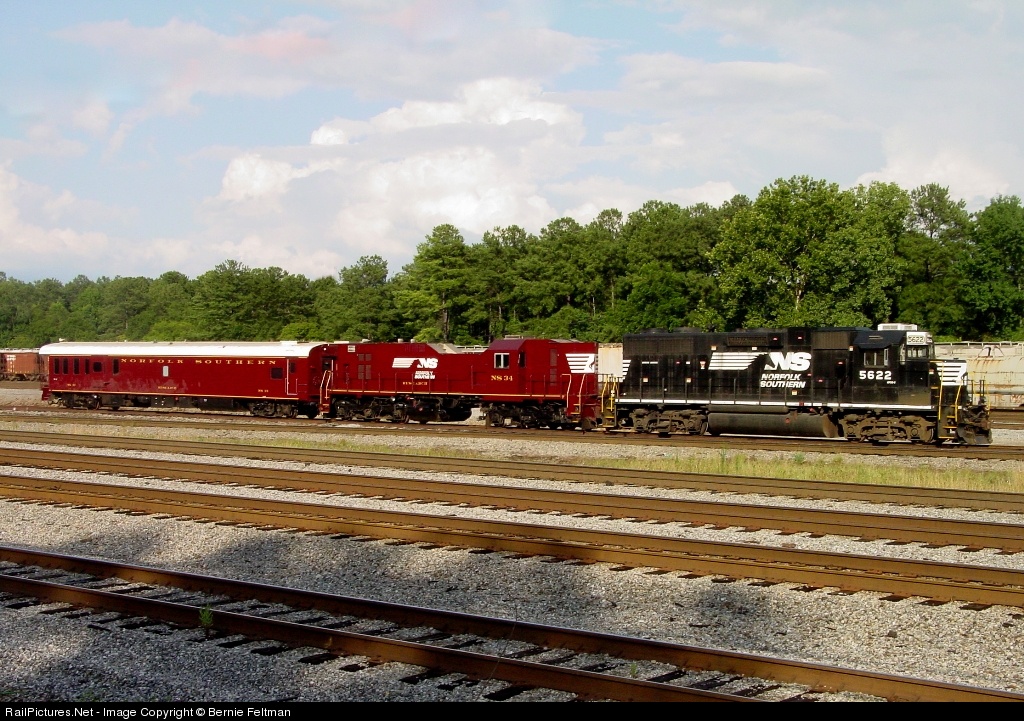 The Norfolk Southern Geometry Train (NS 34 & NS 33) is tied down at Norris Yard for the weekend