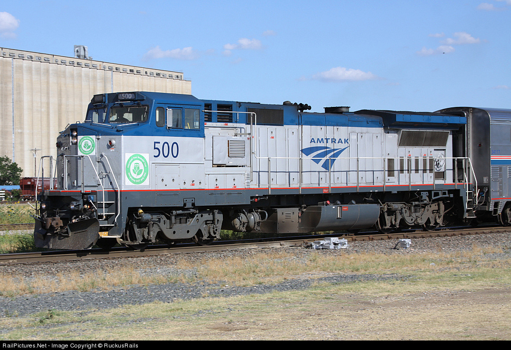 Running on B20 biodiesel from beef byproducts, AMTK 500 is being monitored for performance and wear on mechanical parts by Amtrak during its 12 month test.