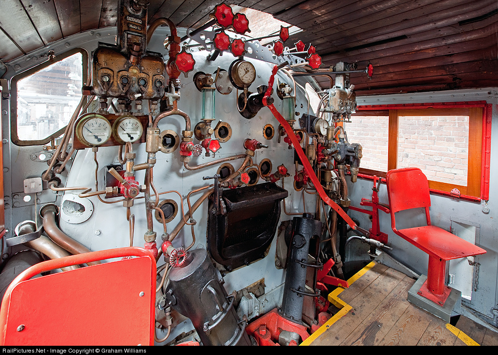 | A shot inside the cab of a magnificent 214-ton Beyer-Garratt GL class locomotive at the Manchester Museum of Science and Industry. This huge loco was built in 1930 by The Beyer Peacock Company in Manchester and is now externally restored and on display. The loco was used on the South African Railway Durban - Cato Ridge section of the Natal main line until 1968 and then on the Stanger-Empangani route until withdrawal in 1972, it returned to England in 1984. |