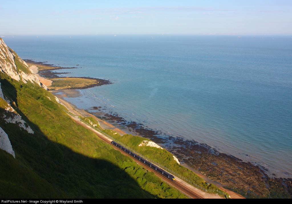 A Japense Train, on an English Railway, in a French named location, with the French coast just visible in the distance along with the cross channel ferry traffic. South Easterns 1844 Dover Priory to London St Pancras passes below the famous 'White Cliffs' of Dover.