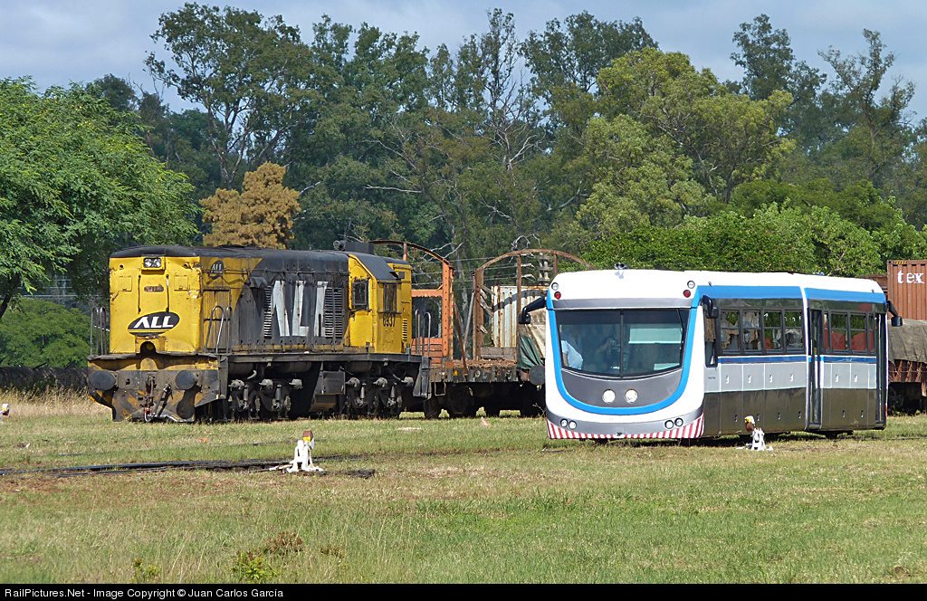 Brand new light railcar built and designed by Tecnotren to operate in bad track conditions at 60Kph. Today was added another unit making a 3-body vehicle. At the back GE U12 assembling cars to form A71 train (see photo id=326541 to viw the depart of this train)