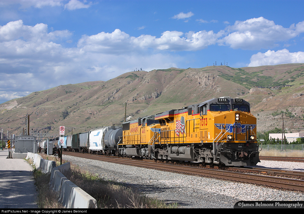 | Union Pacific's North Platte, NE to West Colton, CA manifest departs Salt Lake City for the next crew change at Milford, Utah. |