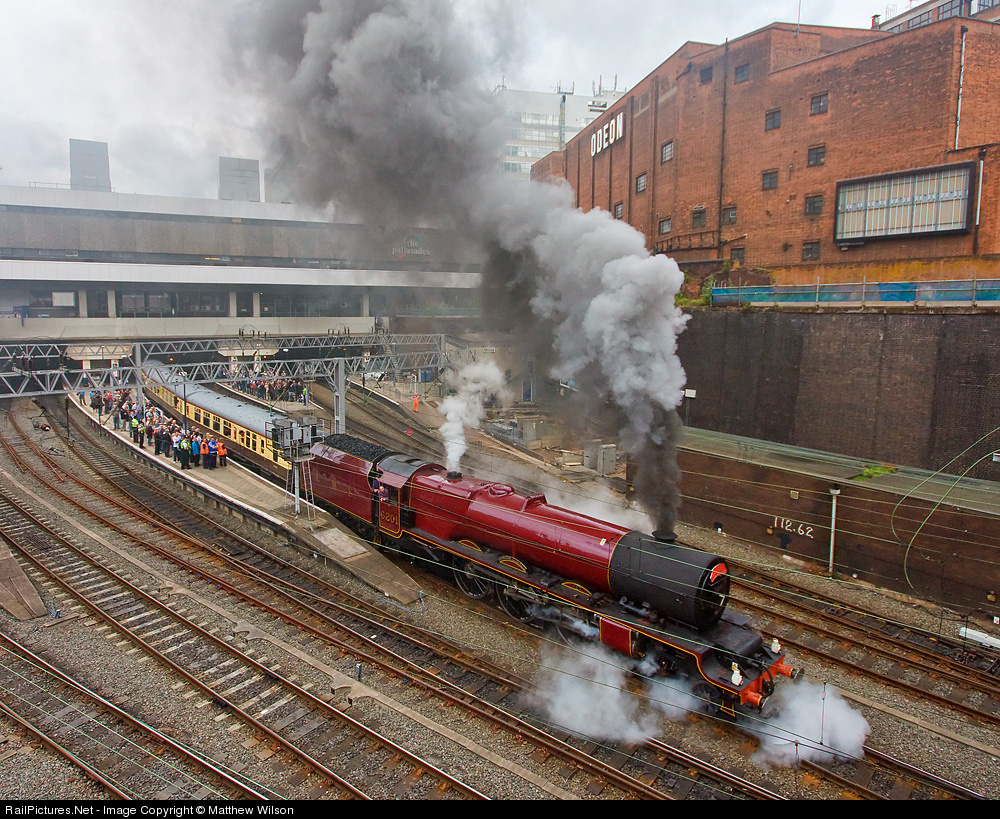 A truly historic moment as 6201 'Princess Elizabeth' becomes the first steam loco to haul a train from Birmingham New Street station in around 44 years. When the station was rebuilt is 1965 it was classified as an underground station, and so steam traction was totally banned from ever working there. However, due to 'outside the box' thinking, and sensible negotiations between Network Rail, Vintage Trains and West Coast Railway Company, a plan was devised where the LMS Pacific never needed to go beneath the body of the station. Full credit to the crew for making a visually fantastic departure as well as an aurally magic one.