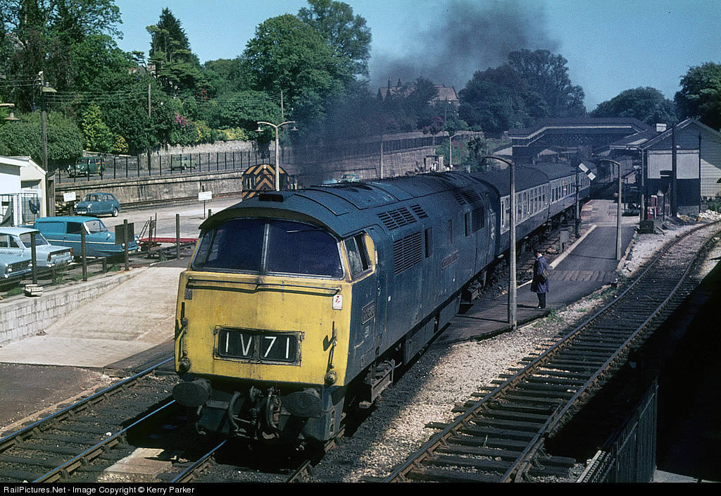 | 1046 "Western Marquis" departs St Austell with 1V71 Leeds - Penzance. Photo by the late T.E. Baxendale. |