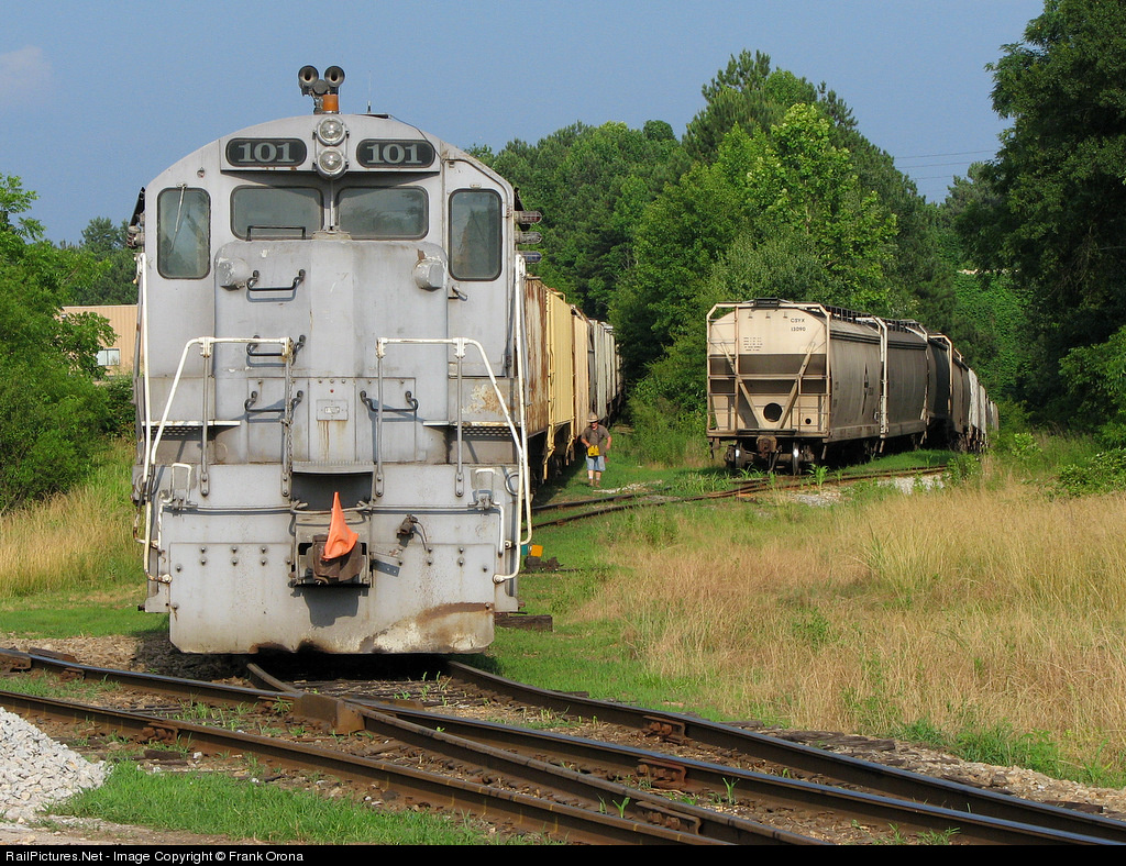 | The pride of Pilgrim's Pride Feed Mill has just coupled up to some covered hoppers as the remote control operator walks back toward the head end of his train. In his next move the operator will spot the empty covered hoppers for loading. |