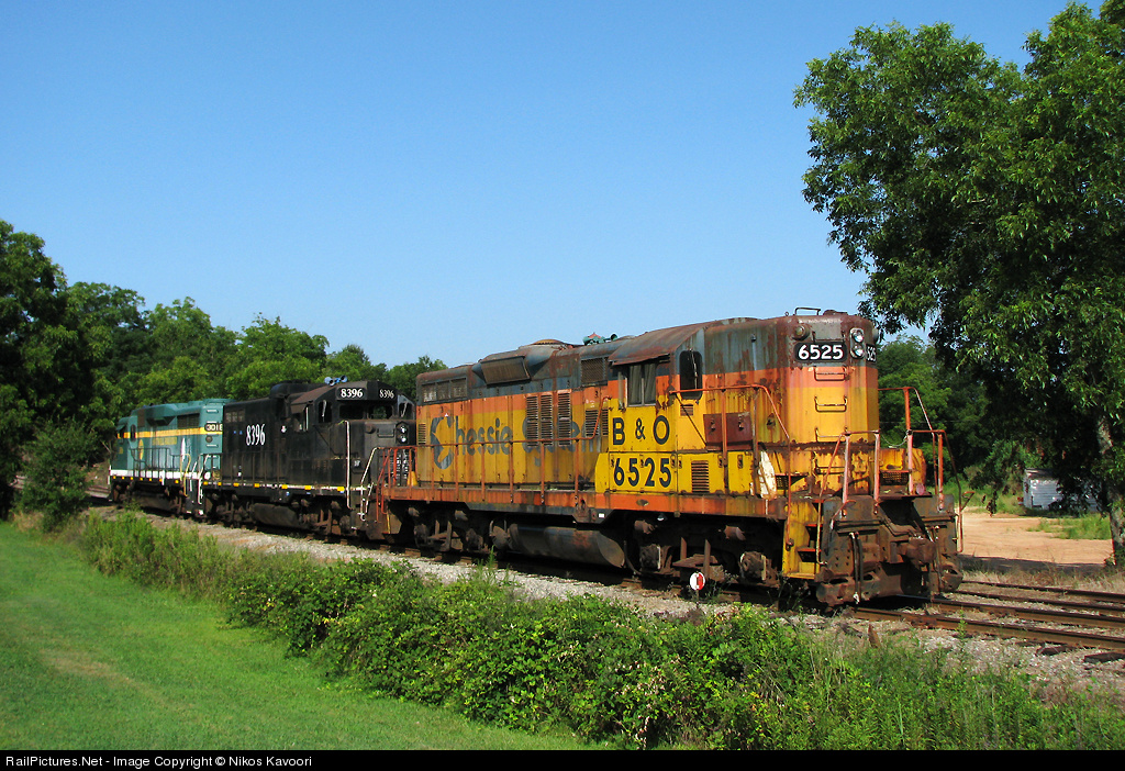 | Family Portrait The entire Athens line rosters sits in downtown Watkinsville. After several years of being out of service, B&O 6525 is back from the dead, with a new generator under the hood. After taking some storage cars to Watkinsville the day before the units were tied down where they would resume work later that day and then head back to Athens. |