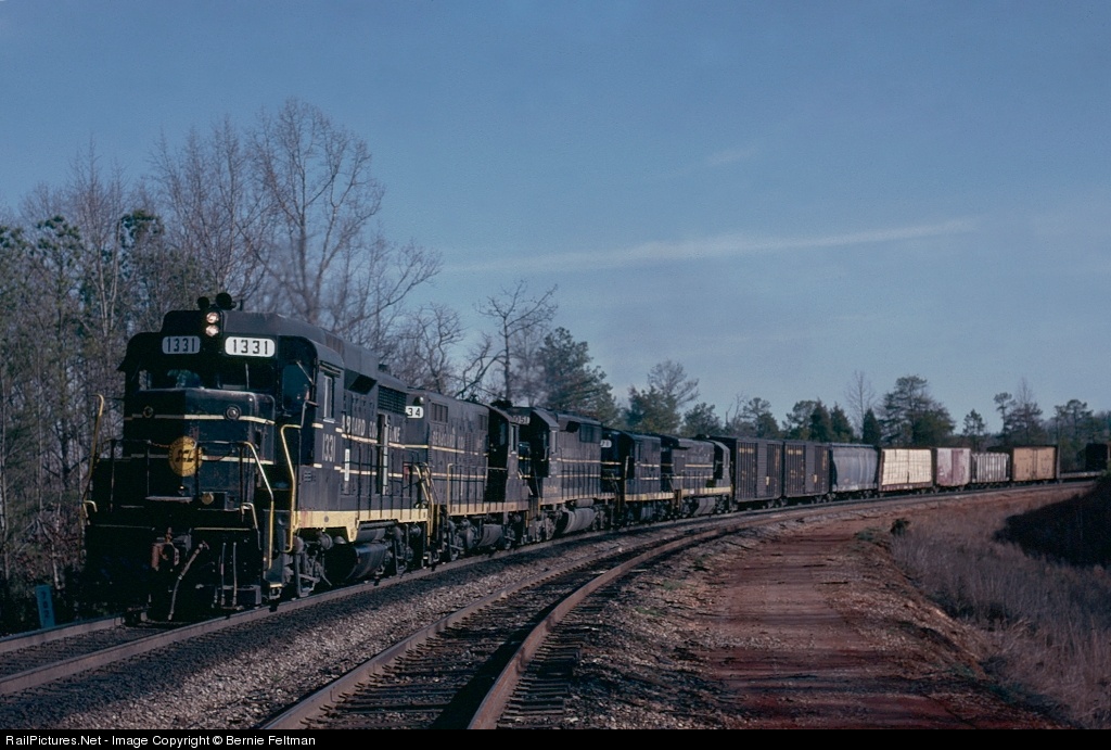 SCL GP30 #1331 was built January 1963 as Seaboard Air Line #522. It is leading SCL GP9 #1034, SCL SD45-2 #2051, SCL GP7 #771 and SCL U36B #1773