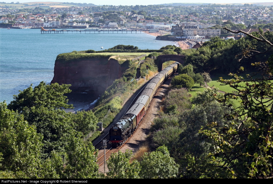 | 71000 ‘Duke of Gloucester’ hauls 1Z28 16:42 Kingswear – Bristol TM ‘Torbay Express’ charter past Hollicombe on Sunday 25th July 2010 |