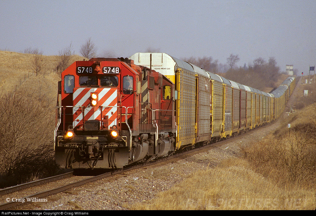 Once a train on the IMRL, the Hoffman Ave, MN, to Kansas City, KS, autos roll down the Spineline north of Hampton, about 40 miles south of Mason City, IA. When the UP was awarded this business, the CP power did run thru out of St. Paul many times. This business was gain back by CP/DM&E a few years later when UP started putting this business on normal freight trains.