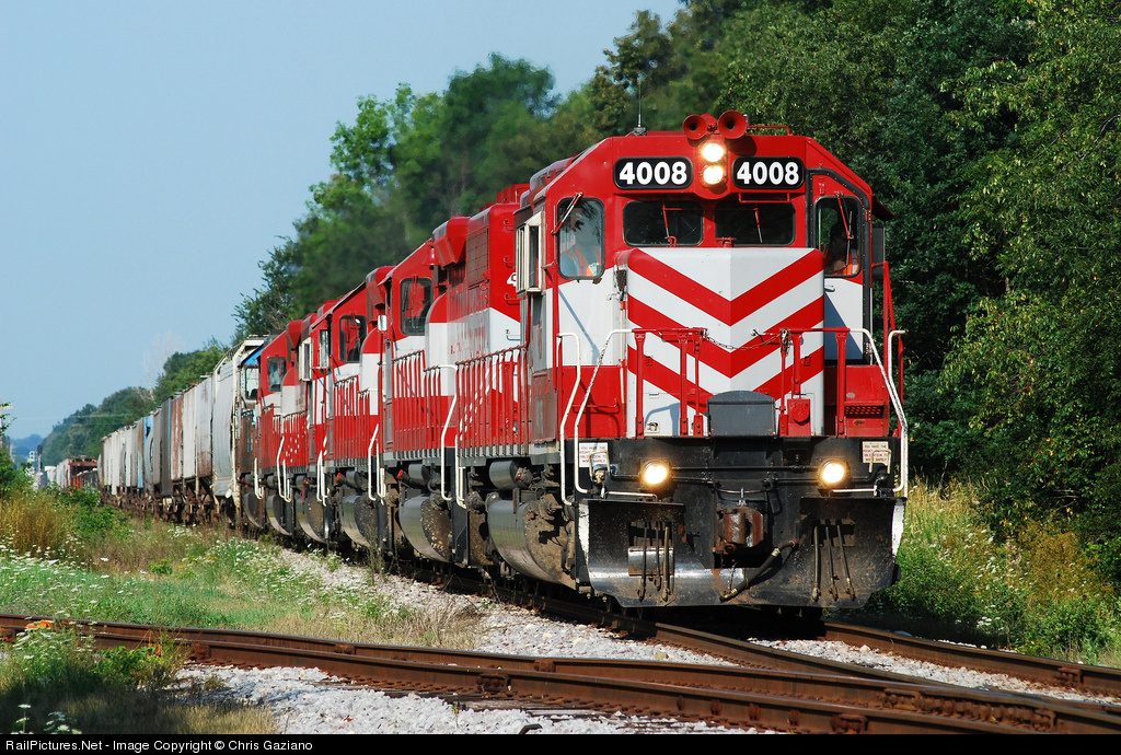 The engineer slowly brings a Horicon to Janesvill Wi. train into Slinger. The CN dispatcher has just given them permission to head down and hop onto CN rails for the short trip down to Grand Ave. There the WSOR will roll back onto home rails for the rest of the trip to Janesville.