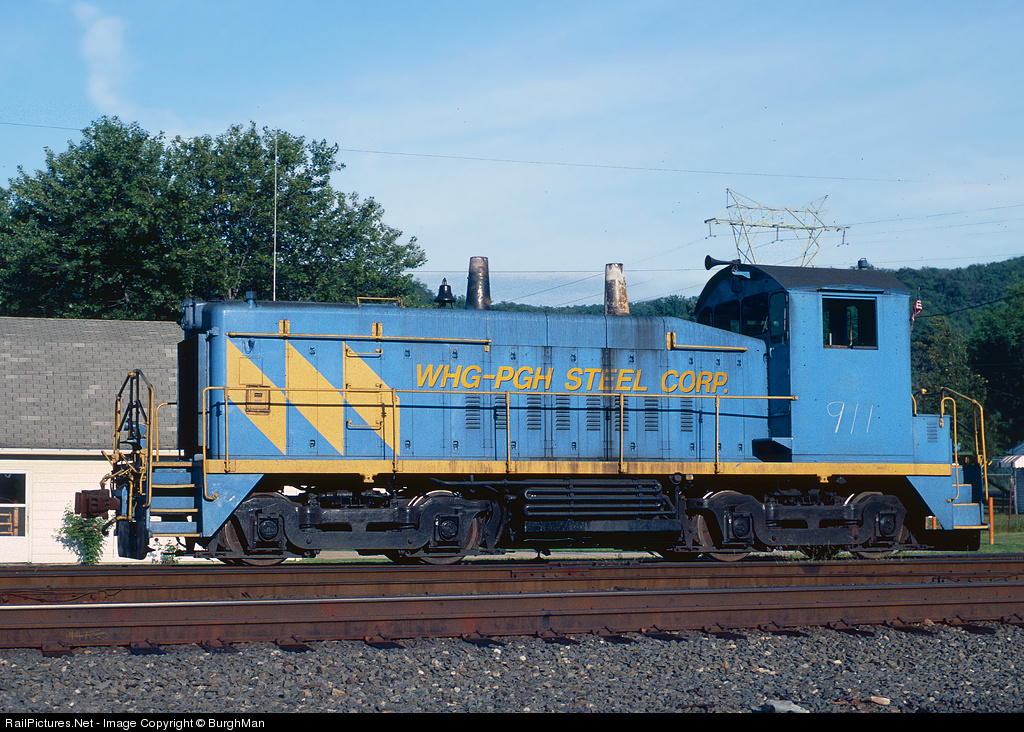 The Wheeling Pittsburgh Steel switcher heads out to the Conrail interchange to pick up another load of steel coils. The swticher had the number 911 chalked onto the side and was flying the American flag. However the photo was taken exactly two weeks before 9/11. Hmmm.