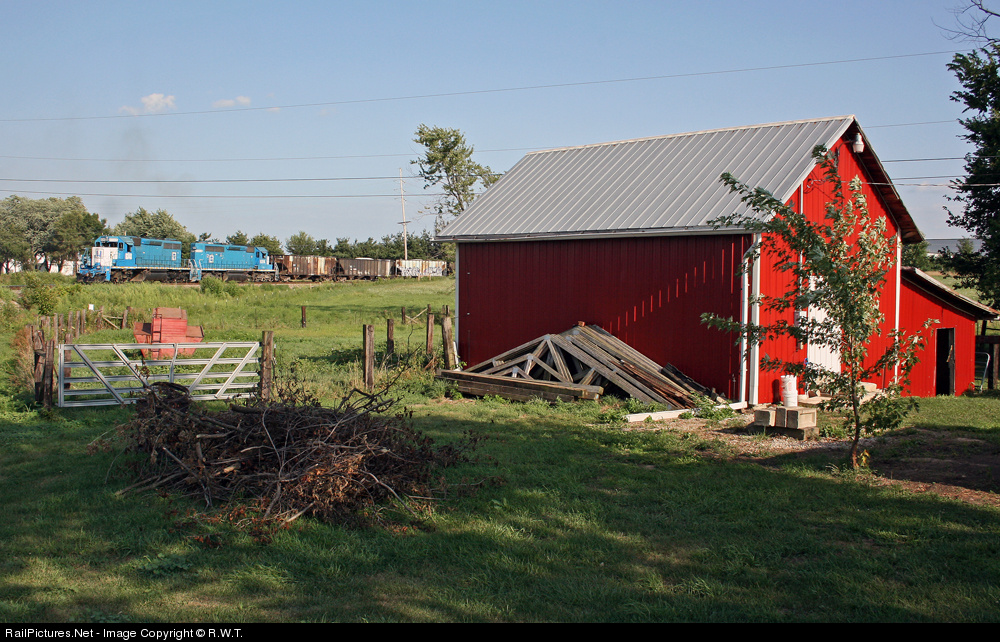 A Wheeling & Lake Erie stone train shoves back around the New Haven Connection in Bellevue, passing a nice barn along the way.