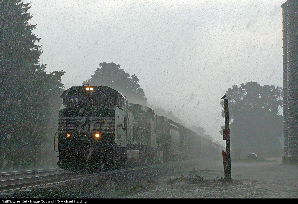 There's rain and then there's "where's my Ark???" 34N is rolling at track speed with rain flying from the train through a summer downpour in western Ohio.