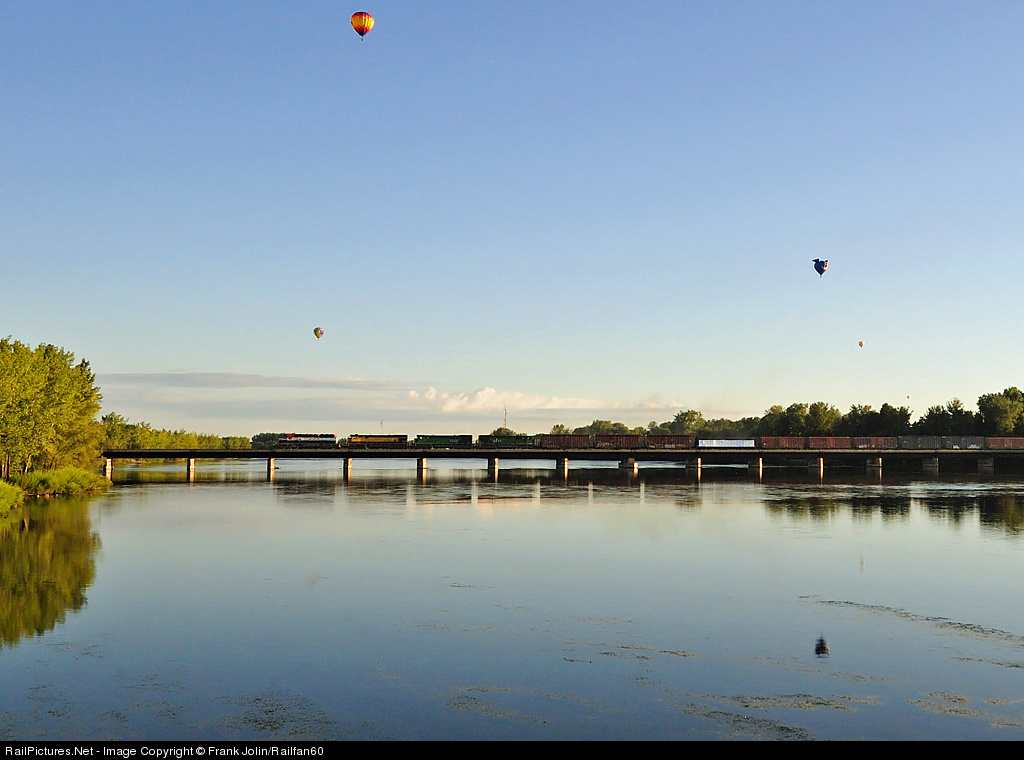 Perfect morning for an early flight as Montreal bound MM&A train # 2 crosses the Richelieu River at sunrise