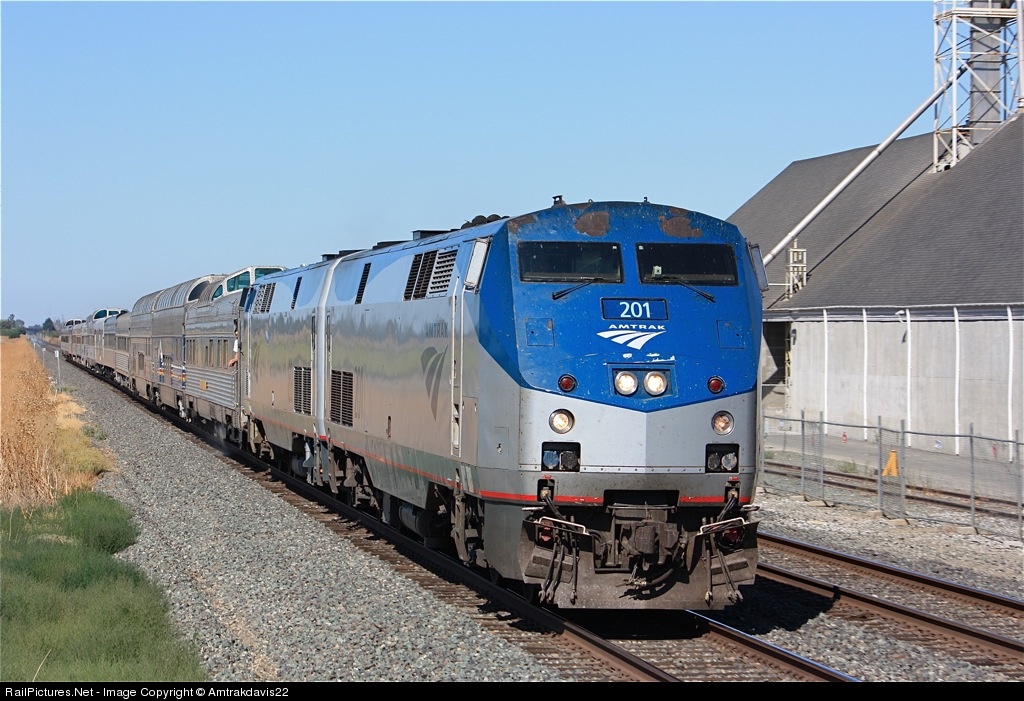 | The Feather River Express, led by Amtrak 201 flies through the Farm Lands of Northern California near Dixon, CA. |