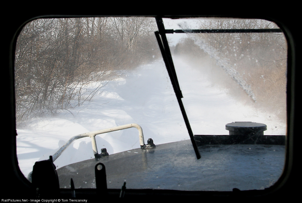 Finger Lakes B23-7 2305 is westbound on a lightly used branchline that runs from Himrod to Penn Yan NY. March day in which weathr varied from some sun to absolute white out conditions. The local had not been over this line in a week and had to break through long drifts. Finger Lakes crews really earn their pay on days like this.
