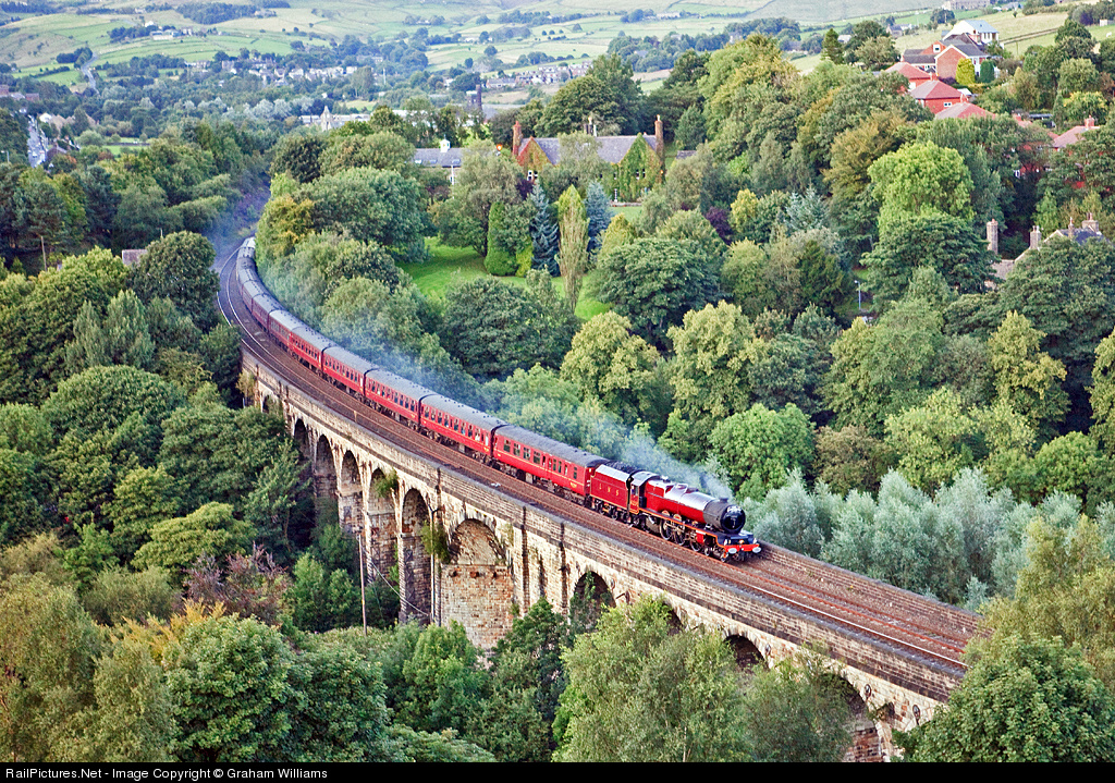 6201 Princess Elizabeth crosses Saddleworth Viaduct with the returning Scarborough Flyer railtour on 27th August. Sadly, the sun had gone down below the hill by this time, around 8:00pm.