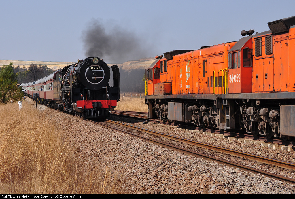 RailPictures.Net Photo: 3046 & 34-458,059 Reefsteamers Association Class 15F 4-8-2 & Class 34-400 at Krugersdorp, Gauteng province, South Africa by Eugene Armer