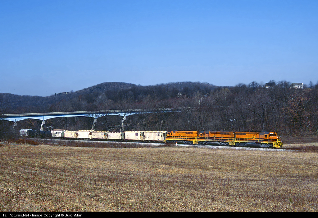 A trio of SD45's lead the Zig-Zag eastbound under I-79 at Harmony. The P&W Subdivision was still owned & operated by CSX at this time with the B&P running into New Castle via trackage rights. The west end of the former B&O line is now operated exclusively by the B&P.