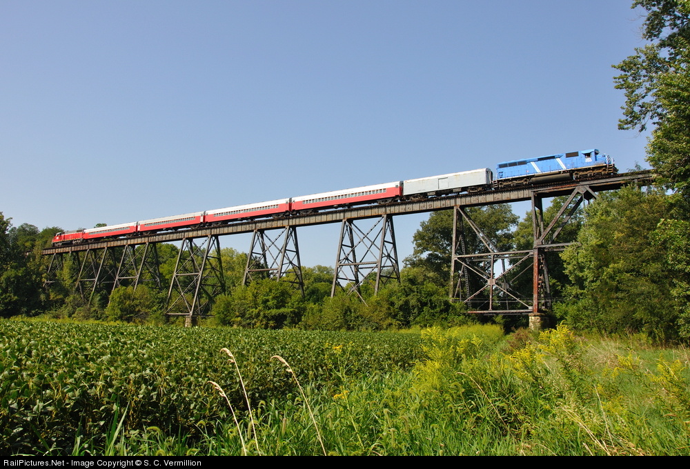Northbound excursion operating on former DT&I rails crosses High Bridge, just north of Quincy, Ohio.