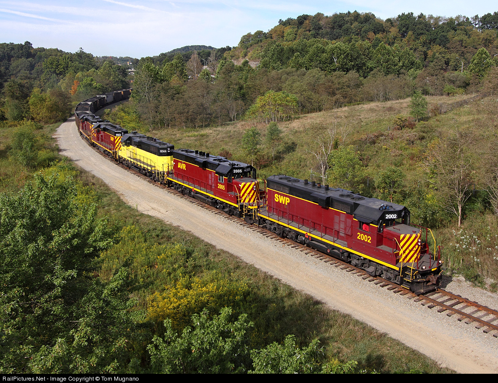 today is an extra SWP move headed for NS on the SWP Radebaugh Branch between N Stanton & Youngwood. Helping out with some extra power was sister Railroad AVR .. power today was SWP 2002 , AVR 2005 , NREX 8749 , SWP 2003 & SWP 2001