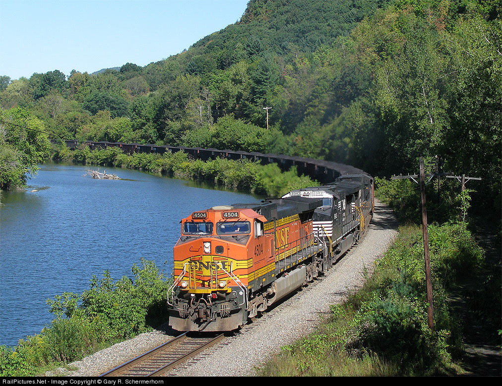 | On a somber day of rememberance, a loaded Bow coal train snakes around the scenic curve at North Pownal today with a nice treat leading on a gorgeous, clear Saturday. |