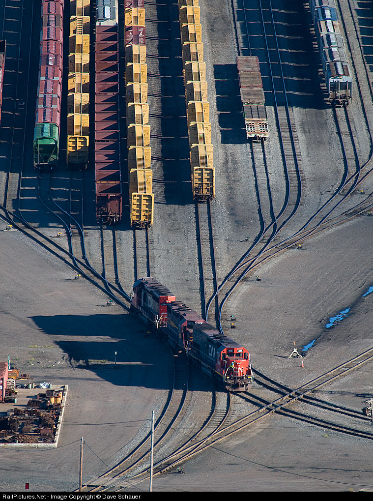 The late afternoon sun casts long shadows on this CN power set that has just dropped off a cut of interchange cars at BNSF's ex-NP yard in Duluth.