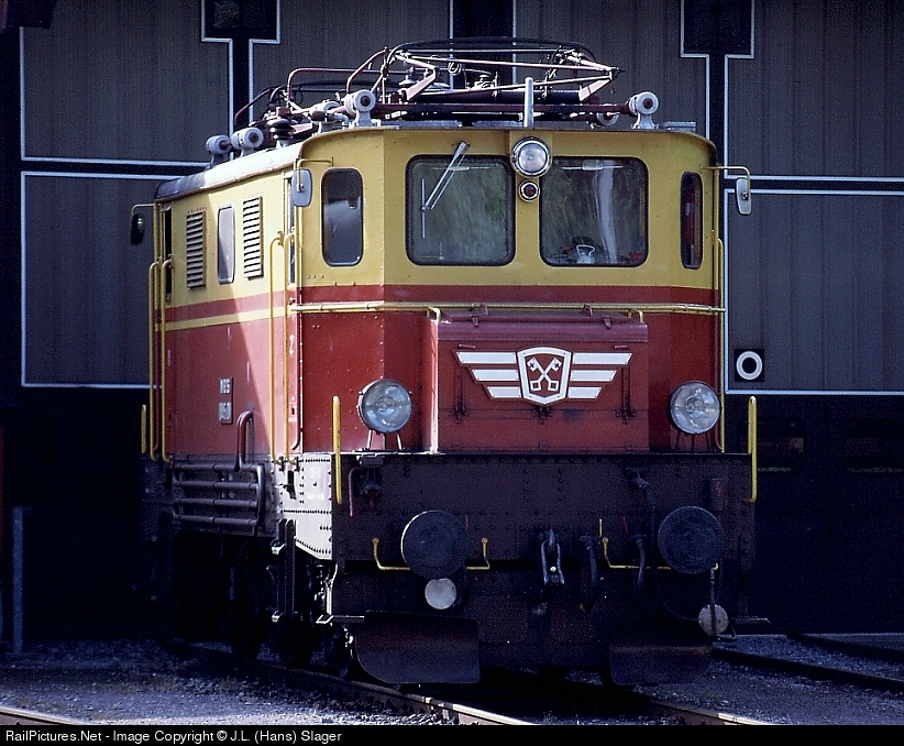 | Former ÖBB Austrian State Railways electric locomotive now in service with MBS (Montafon-Bludenz-Schruns) in front of the MBS Depot in Schruns Voralberg |
