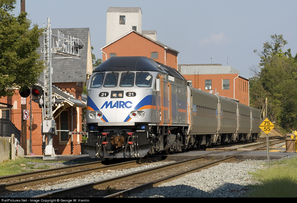 RailPictures.Net Photo: MARC 21 MARC (Maryland Area Rail Commuter) MPI MP36PH-3C at Gaithersburg, Maryland by George W. Hamlin