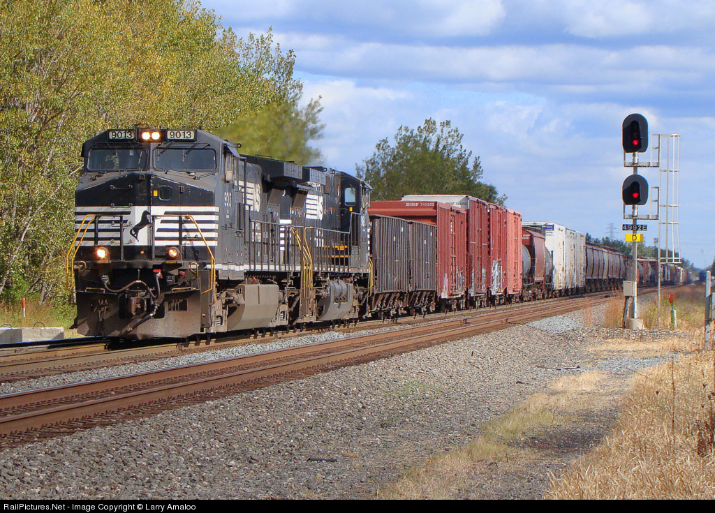 NS 9013 leads a manifest westbound on the NS Chicago Line through Pine Junction