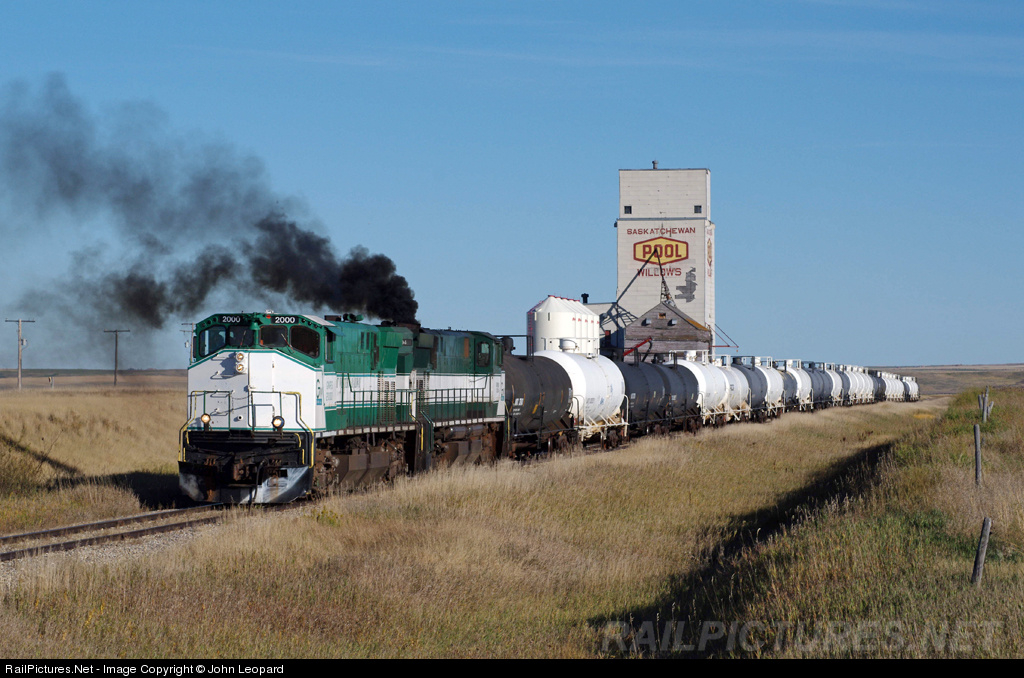 Two of Great Western's former Canadian National M420s are departing Willows after setting off 3 loads of ballast for the MOW boys to dump. The remainder of the train consists of 32 empty tank cars being returned to service after a long period of on-line storage. GWRS began operating this line in 2007 for the farmer-owned Red Coat Road & Rail who purchased the line from Canadian Pacific.