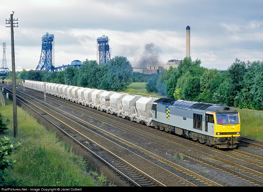 | With the Newport bridge in the background, 60053 heads towards Redcar steelworks with a train of limestone. |