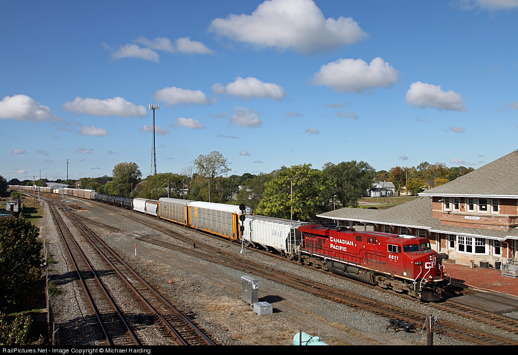 NS 34T - the "new" CP train that used to run as X500 on CSX across Michigan - is rolling through Elkhart on NS by the Amtrak station. This view made possible by the high-lift available at the Railroadfan.com fall meet in Elkhart this weekend. Many thanks again to the National NYC Railroad Museum for helping make it a great event!