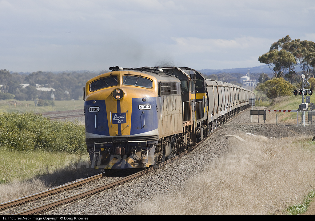El Zorro's loaded grain left Dimboola in the early hours of this morning, with C501 leading T386 and S300. It travelled to Geelong to discharge it's load of grain. Having no direct access to the track to Melbourne, the train had to travel to Gheringhap for the locos to run around. Now with S300 leading, the empty train is seen at Lara, 57 rail kilometres South West of Melbourne. In Melbourne the train will stable at McIntyre for the locos to go to Dynon loco depot for some attention and a reshuffle, then once back on the train it will be off to The Rock in southern N.S.W. to pick up another load of grain. Locomotives are CFCLA's S300 (A7), T386 (G8B) owned by El Zorro and Seymour Railway Heritage Centre's C501 (GT26C)