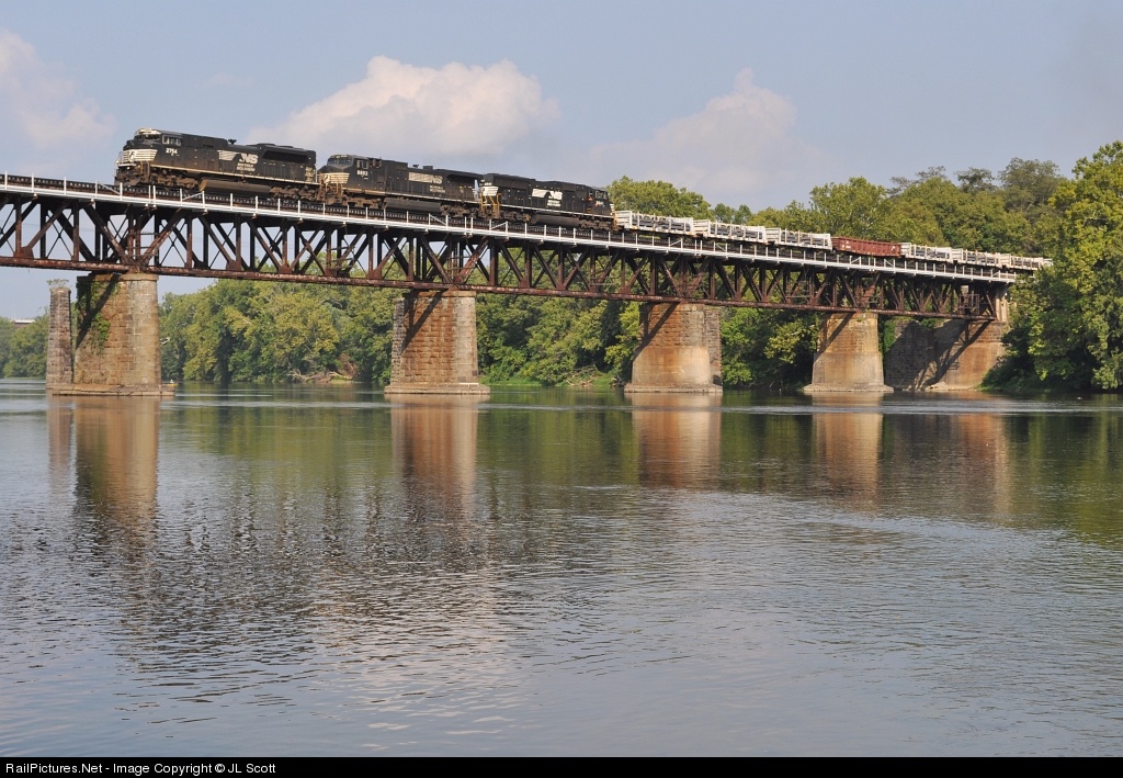 NS 15T crosses the New River at Radford as it makes its way southwest over the old N&W between Roanoke and Bristol.