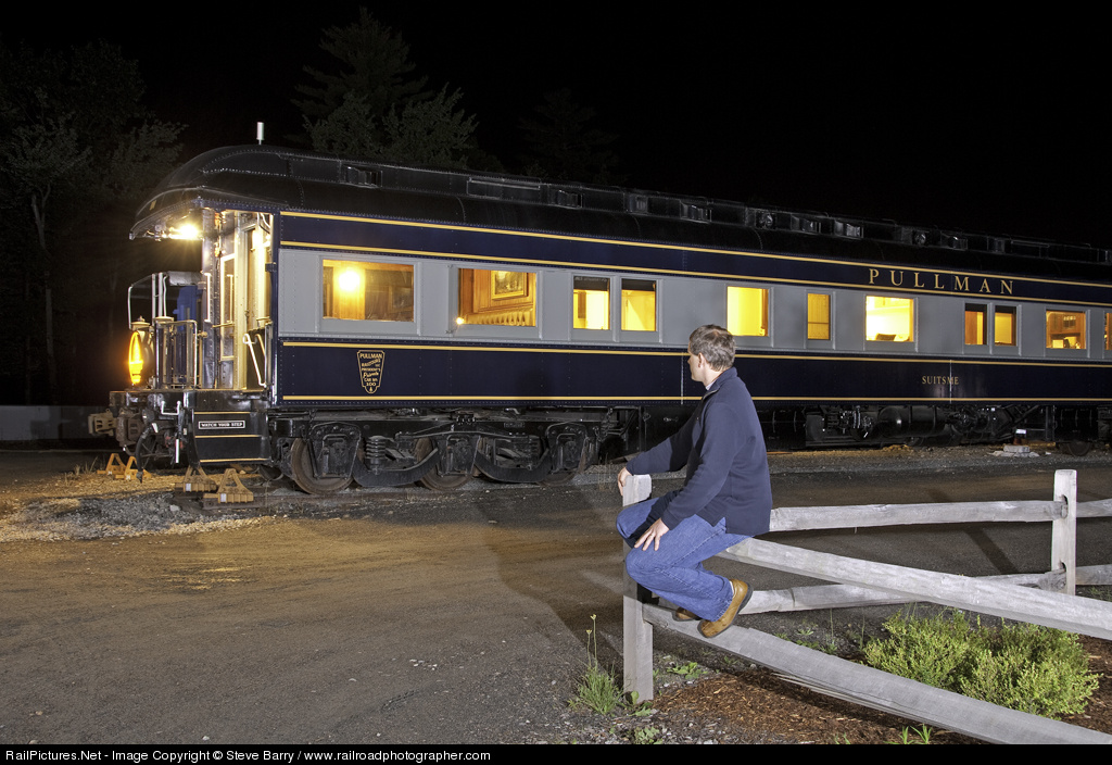 Ben Clark, president of the Hobo Railroad, takes a break during the night photo session during White Mountains Railfest sponsored by the Flying Yankee Restoration Group. Mr. Clark was engineer during the day's trip and was on hand to work headlights on equipment during the night photo session. The Pullman car "Suitsme" resides at the Hobo Railroad. Lighting assistance by Jeff Smith.