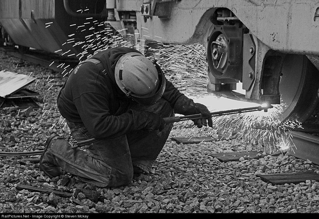 In a downpour the work of scrapping this ex-DEEX U30C continues, now moving to trucks after removing the hood doors.