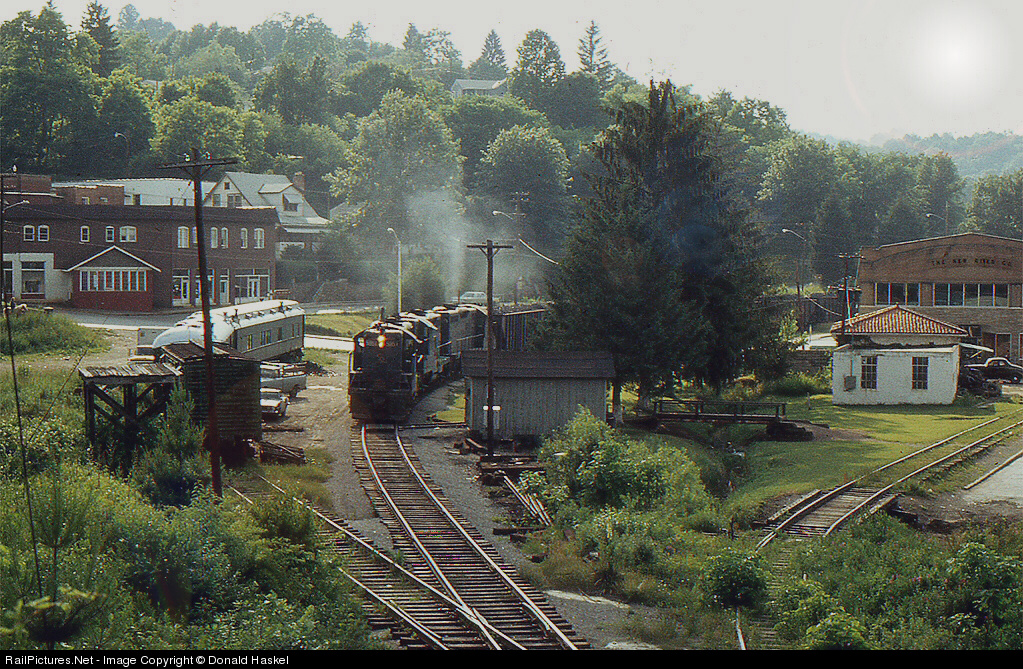 | This C&O coal train was a daily run serving a New River Coal mine near Pax. On the right is a mostly unused new River Co. storage facility. On the left a work train serves a crew rebuilding the tracks at a tipple. |