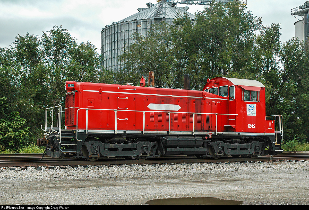 Missouri Farmers Association SW1200 1242 works the grain elevator in Higginsville, Missouri. This engine was delivered by EMD to the Terminal Railroad Association of St. Louis in April 1965, with the M-F-A acquiring the unit in late 2005 or early 2006.