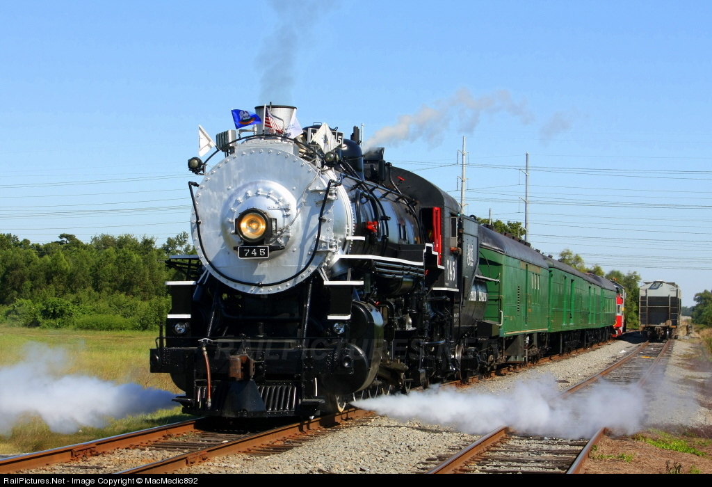| Former Southern Pacific 745 (now leased by the Louisiana Railway Heritage Trust to the Louisiana Steam Train Association) is about to enter the UP Avondale Yard, during its run home following its inaugural visit to the Gretna Heritage Festival.