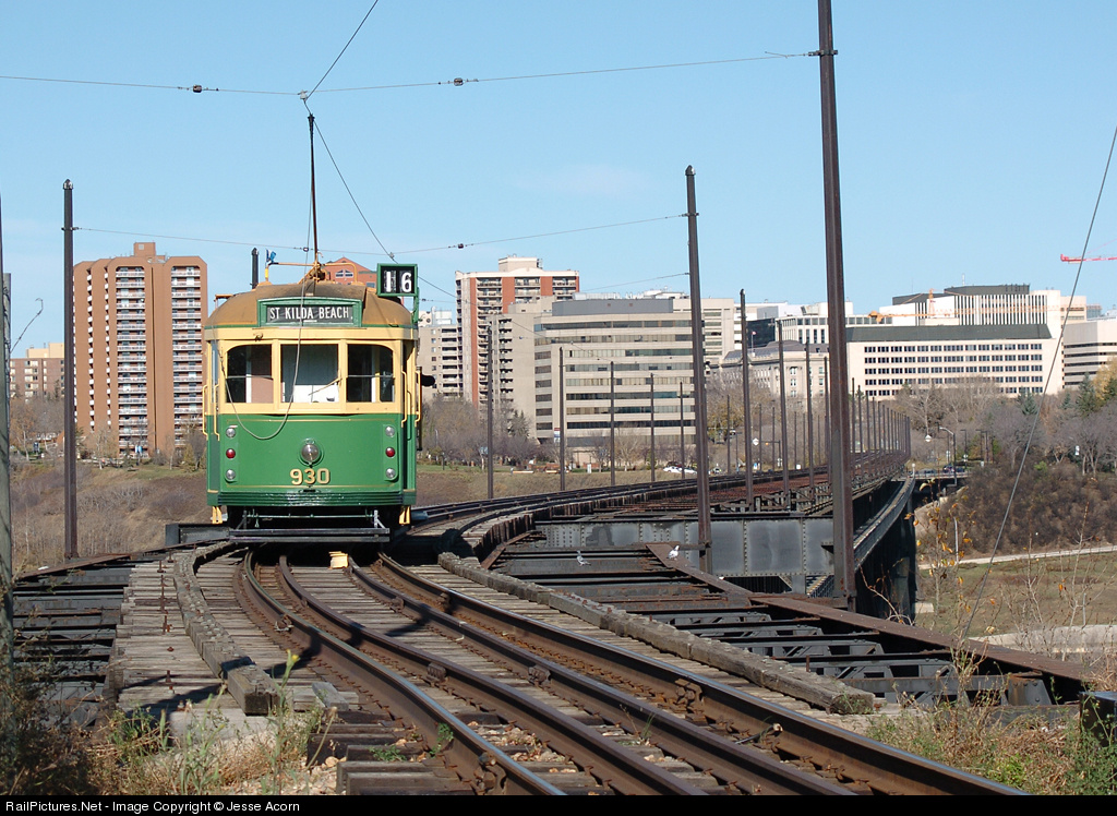 930 makes the 3rd-last round trip on the High Level Bridge line for 2010. Unfortunately, 930 will probably be put out of service for an indefinite amount of time after this year. Another car will take it's place, this time an actual Edmonton car native to the line. 930 needs work on it's frame, and it's electrics have apparently been a problem all year.