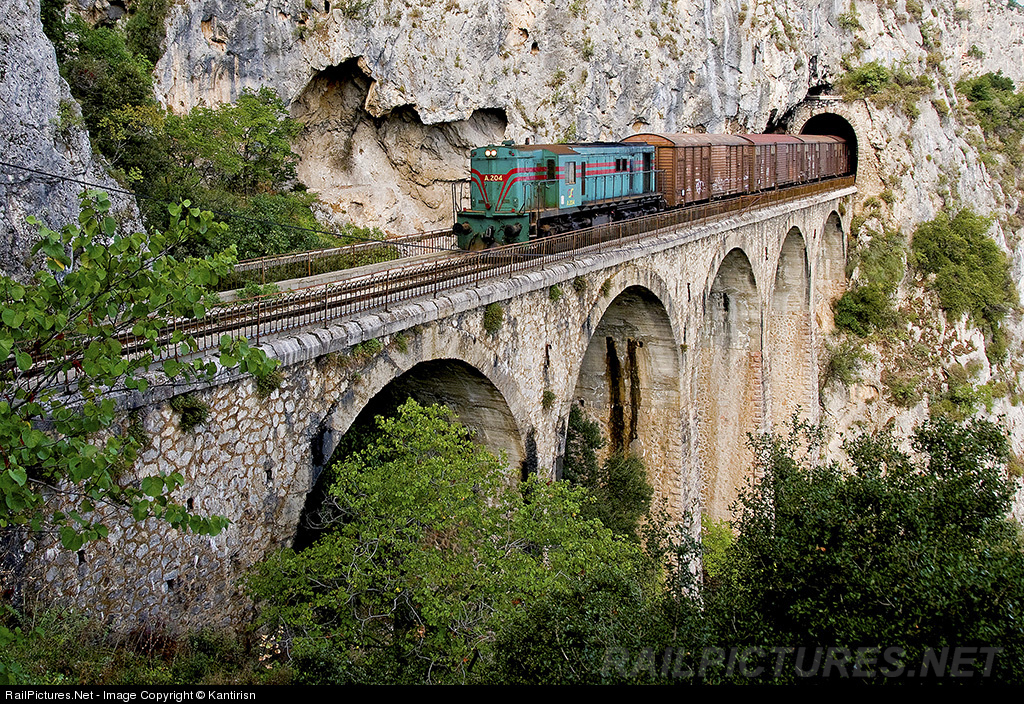 Mini Freight train, crosses the 207 Km bridge, near Trachina