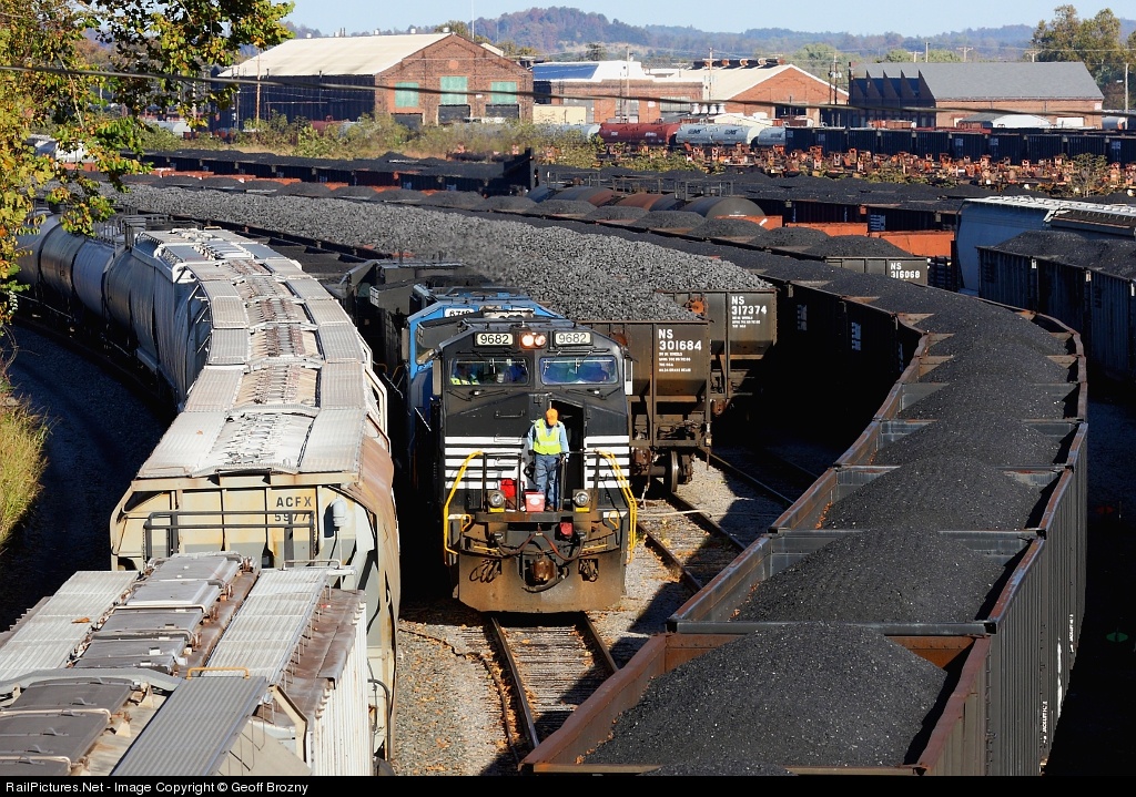 Having just brought this train to the west end of the yard, the conductor gets his things together, while waiting to be re-crewed, problem is, the train is completely surrounded, grain train to the left, two coke trains to the right, and a coal train in front.