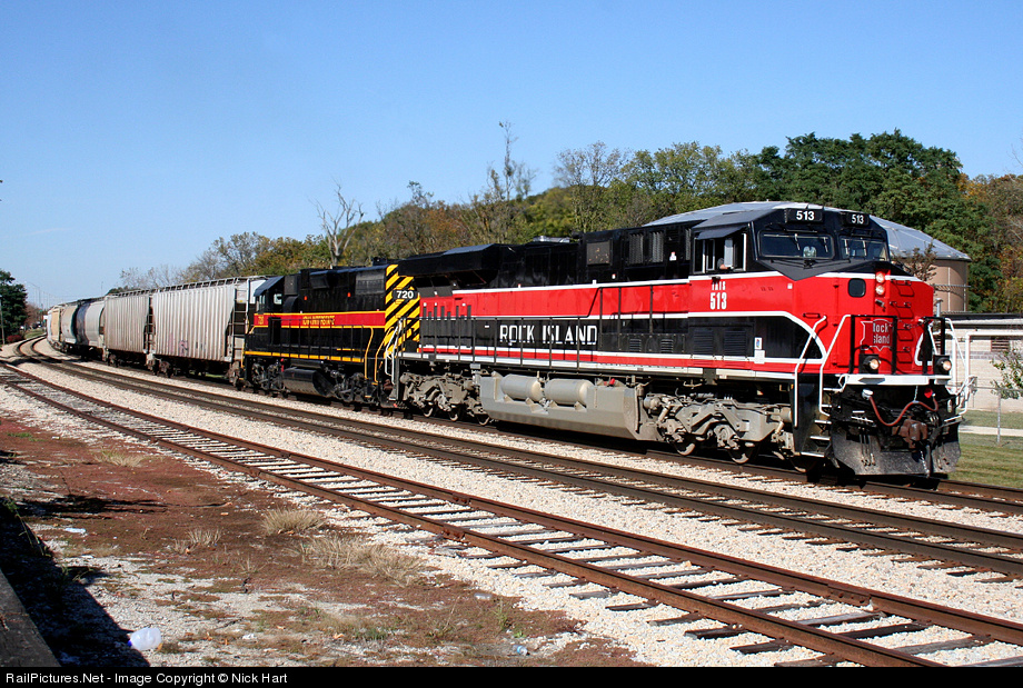 RIBI continues its eastbound journey to Blue Island, powered by the Rock Island 513 and IAIS 720.