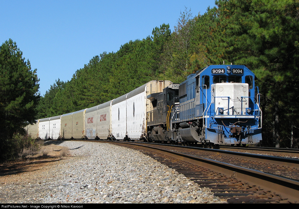 | NS train 298 sits tied down at Winston after going on the law due to the 154 ahead of it breaking a drawbar near Douglasville. The 9094 is unique among the ex-Oakways in that it was repainted by GMTX in a similar scheme and as such looks alot fresher than most of the units. |