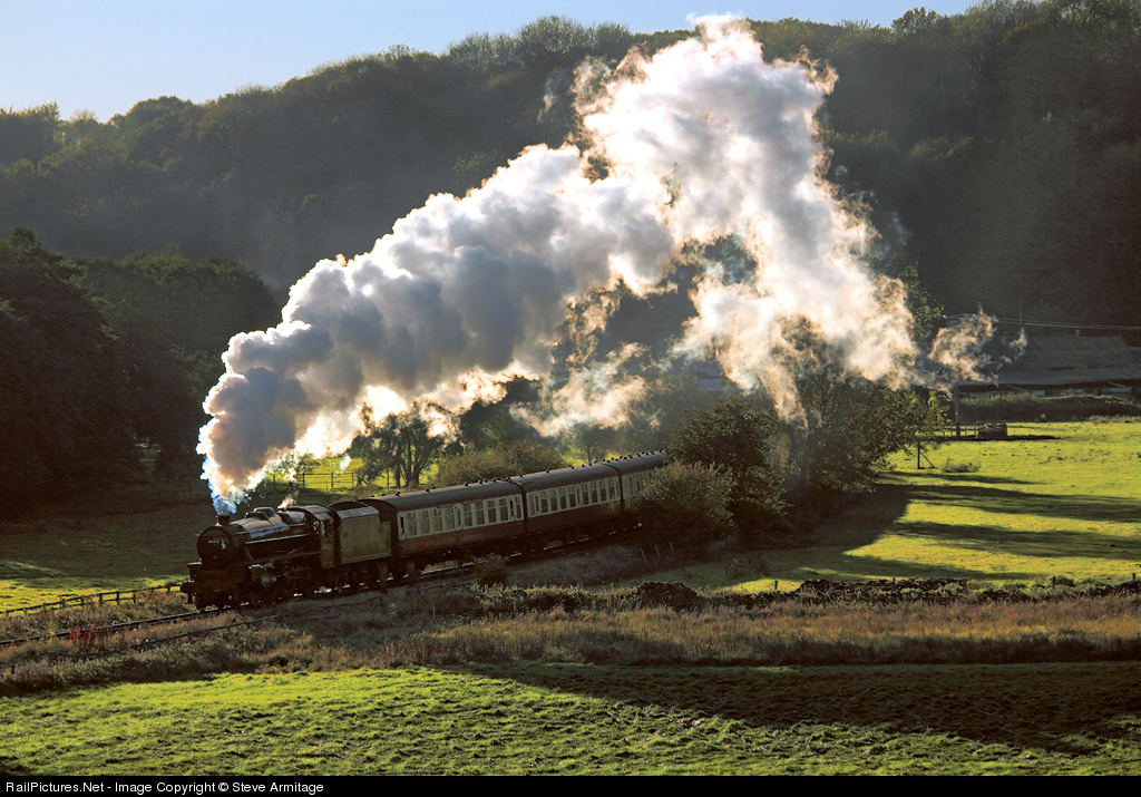 It's fun to break the rules! The late afternoon sun glances across the meadows as the late-running 4pm departure out of Pickering heads back to Grosmont with the last train of the day. This view is always against the sun, but it's only the late afternoon light that adds a touch of backlit drama.