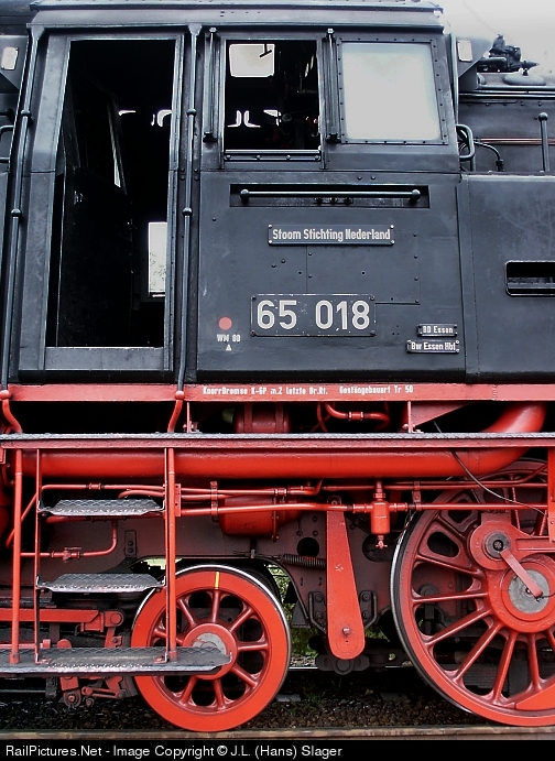 | Detail of the cabin of locomotive 65 018 with nameplate of the owner: Stoom Stichting Nederland. |